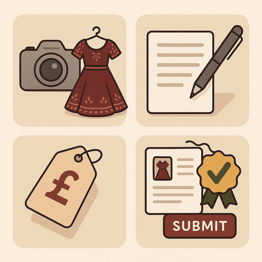 Selling with us is simple and straightforward. Follow these easy steps to start selling your preloved South Asian clothing.